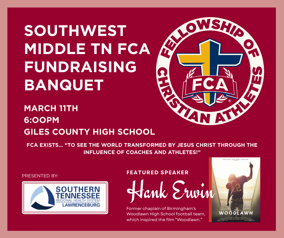 We would love to have you at our upcoming Giles County Banquet. All of Giles County community and more is invited to see what God is doing through FCA in the local campuses.